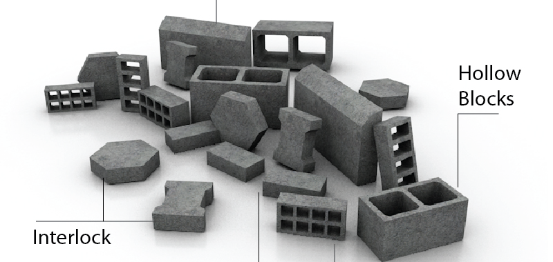 • الطوب الأسمنتي: المصمت والمفرغ الذي يتمتع بقوة تحمل عالية ويُستخدم في الأساسات والجدران.